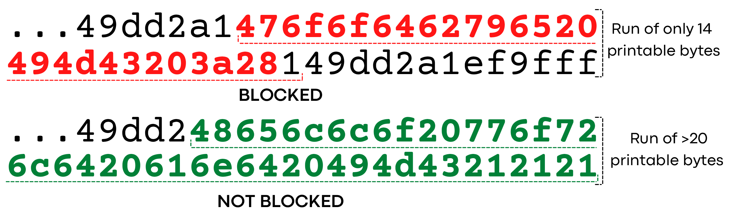 这证明当有连续的可打印的ASCII字符出现时,连接会被豁免。